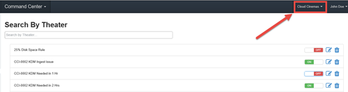 4 - To change the group of theaters you will see a drop box in the upper right corner. (NOTE: Your access may not permit you to change the group of theaters).