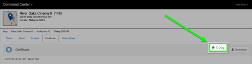4 - You can Copy a certificate to your computer's clipboard by clicking COPY on the right side of the screen. If you do this successfully, you will get a confirmation that the item has been added to your clipboard.
