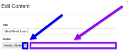 4 - STUDIO - To delete what is in the box, click the small "x" next to the name of the studio (blue box). Then click in the box and it's a drop box (purple box). Choose the new studio from the list.