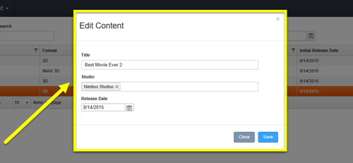 1 - FORMAT - This is a drop box. Choose 2D, 3D, IMAX 2D, or IMAX 3D for the feature's format. These are the default options. If you added more formats in your settings, you will see those as options, as well.
