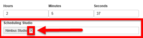 3 - SCHEDULING STUDIO - You can remove what is in this box by clicking the small "x" next to the name. The box is a drop box when you click, it will expand. Choose the appropriate studio from the list of studios. If the appropriate studio is missing please let your Help Center Admin know.