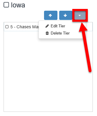 6.4 - You can edit or delete a Tier by clicking on the grey drop box.