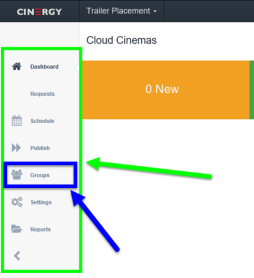 1 - Click on GROUPS (blue box) in the left navigation bar (green box).
