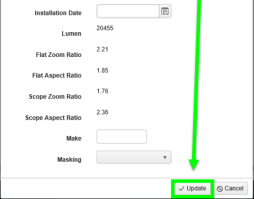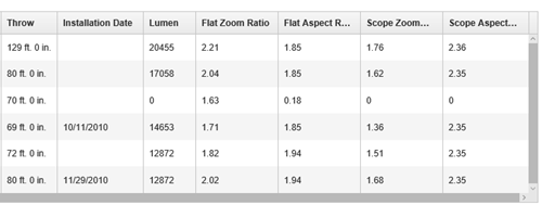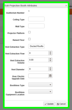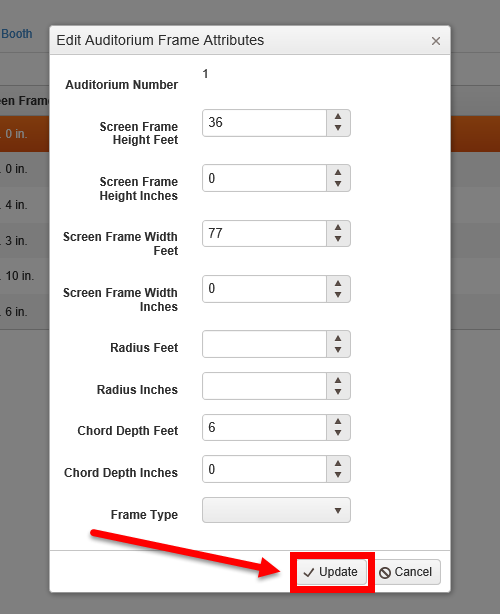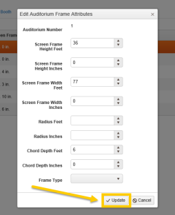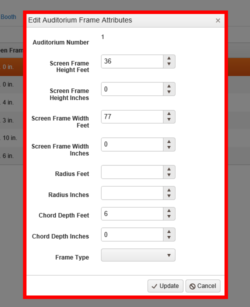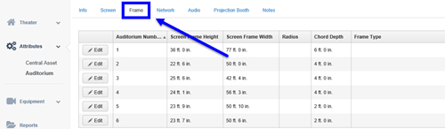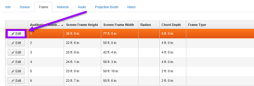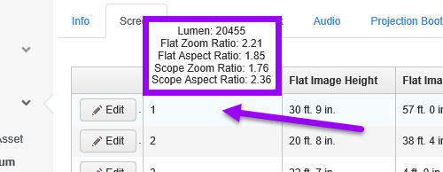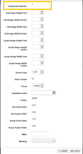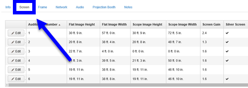 2 - SCREEN - This screen gives all of the technical specs of the screen in the different Auditoriums.