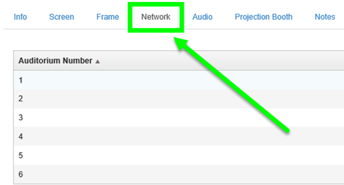 4 - NETWORK - This section will show any Networks associated with each Auditorium.