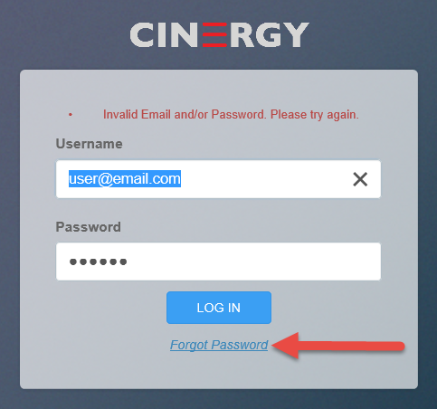 1 - Click on the FORGOT PASSWORD link in the login screen.