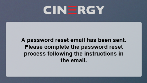 3 - A screen appears that states that a password reset email has been sent.