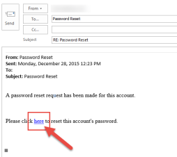 4 - You will receive an email with a link to reset a password. Click the word "here" on the email.