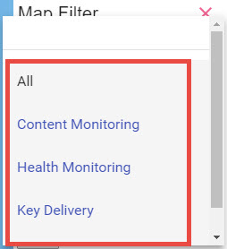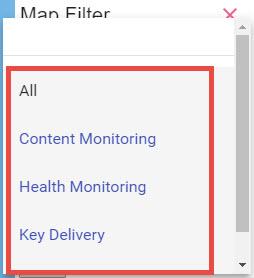 5 - Under SERVICES you can filter sites that only use "Content Monitoring", "Health Monitoring", "Key Delivery", and "Log Management" or a combination of all or any of them.
