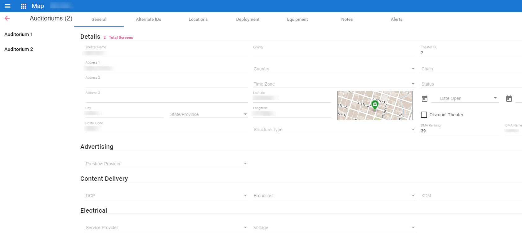11 - Double-click on the site and the Auditoriums screen will open.