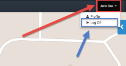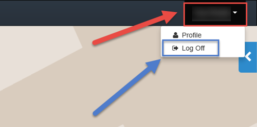 1 - Click on the Drop Box in the upper right corner (red box) and click "Log Off" (blue box).