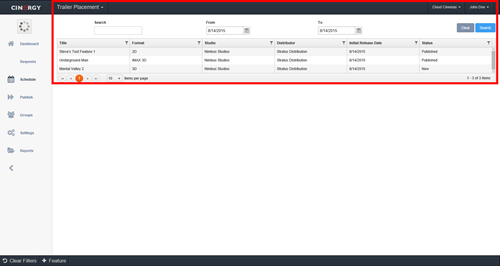 2 - The SCHEDULE screen shows the features that fit the dates you put in your filters.