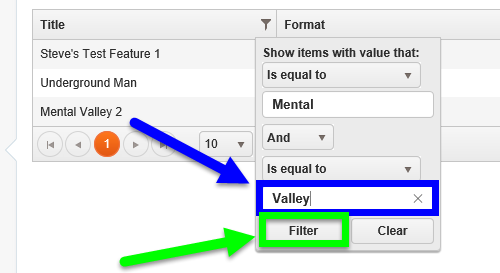 7.3 - Then fill out your secondary search criteria (blue box) and lastly, click the FILTER button. You can click CLEAR if you don't want to continue with the filters. This will clear them and no changes will be made.