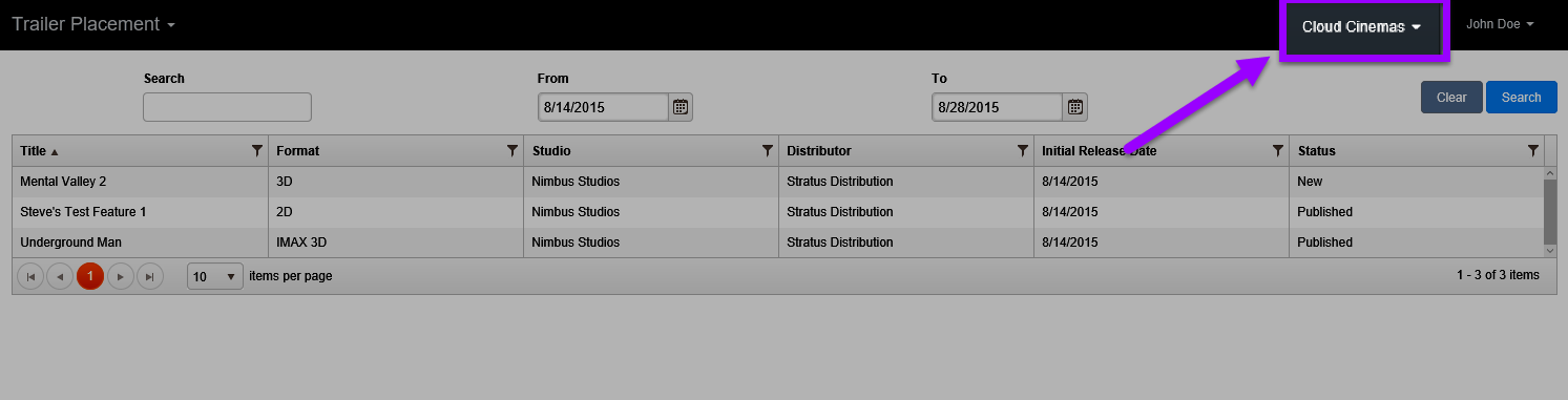 8 - If you manage more than one exhibitor, you can change the exhibitor by clicking on the drop box in the upper right part of your screen.