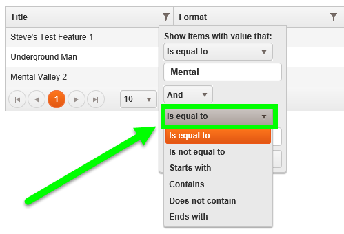 7 - The filter gives you a number of options. Select the appropriate option for your search.