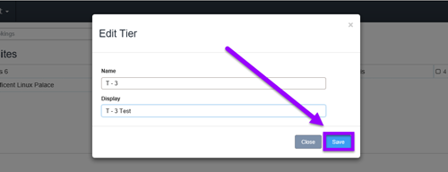 3 - This will create a pop-up that says "Edit Tier" at the top. It will show the current Name and Display of the Tier.