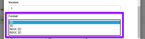 10 - FORMAT: This is a drop box. The defaults will be 2D, 3D, IMAX 2D, and IMAX 3D. These can be altered in the SETTINGS screen.