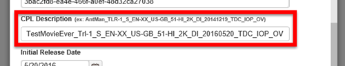17 - CPL DESCRIPTION: This is the description that is created per the Digital Cinema Naming Convention.