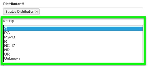 13 - DISTRIBUTOR: Choose the distributor of the feature. This is a drop box when you click in it. However, you can search faster if you start typing out the name of Studio.
