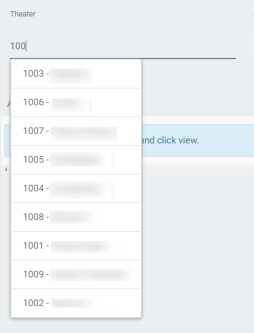 1 - Start typing a theater name or theater ID in the THEATER ID - THEATER NAME section. A drop-down will appear with options that fit the criteria of what you typed.