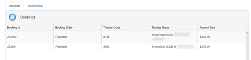 3 - In Bookings/Distributions, there are two sections. The first is BOOKINGS. This section shows all the bookings attached to the invoice being shown in the Invoice Requests section.