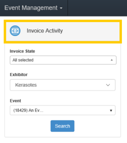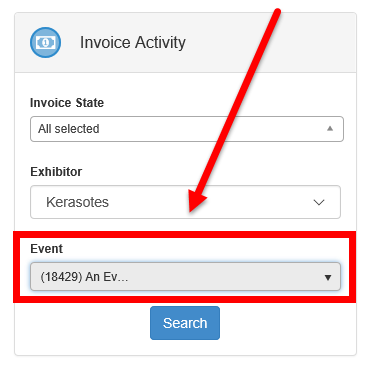 1.3 - EVENT - Here you can change the event for which you are viewing invoices.