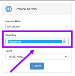 1.2 - EXHIBITOR - In this drop box you can change the exhibitor for the invoices you are viewing.