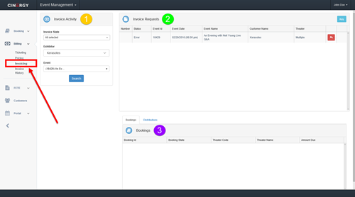 2 - Under INVOICE REQUESTS you see the Invoices that fit your search criteria.