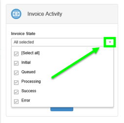 1.1 - INVOICE STATE - You can have your results show various (or all) states of the invoice. This is a drop box where you can "Select All" or choose individual states.