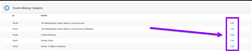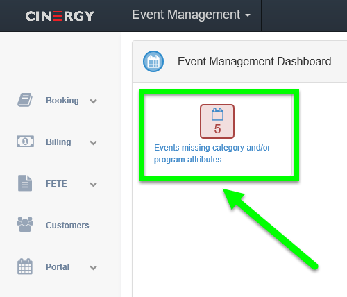 2 - This will take you to the Event Management Dashboard. This will tell you any Events that are missing a category and/or program attribute.
