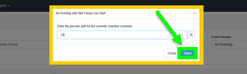 7 - There will be a pop-up (yellow box). Type in the percentage and then click the blue SAVE button (green box).