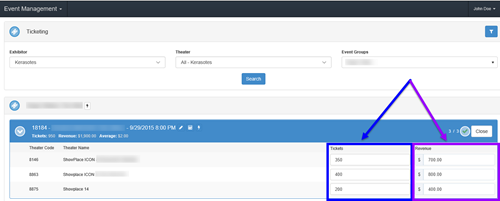 3 - THEATER - In this drop box you will find all of the theaters under the selected Exhibitor.