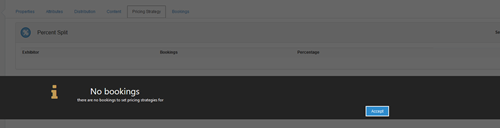 5 - The next tab is PRICING STRATEGY. This is where you can see the pricing split among the exhibitors. (Note: You will get the following message if there are no bookings for this event)