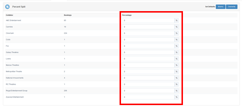 5.1 - You can type in the percentage of the ticket sales for each exhibitor. This page does tell you how many bookings there are for each exhibitor.