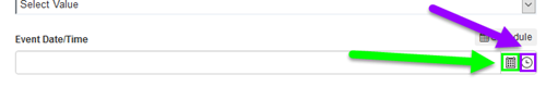 4.2 - EVENT DATE/TIME : You can type in a date and type but the easier method is to click on the Calendar symbol (green box) and Time symbol (purple box).