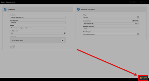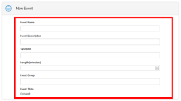 6 - This will bring you to the EVENTS screen. Here you can fill in the rest of the fields.