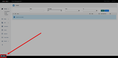1 - From the Events screen, click on the + ADD button in the lower left corner of the screen.