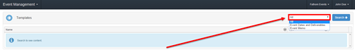 2 - Click on the Drop-Box on the right side of the screen to select the type of Template you want to pull up.