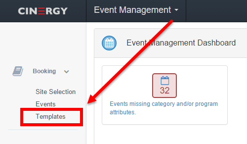 1 - Click on BOOKING in the left hand navigation bar, and then click the TEMPLATES link.