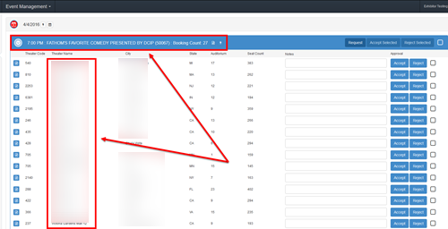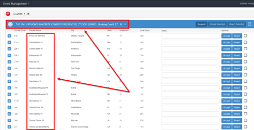 8 - You will see the event time, and all of the theaters that have been scheduled to have this event, below the date.