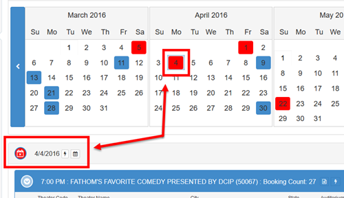 3 - You can filter by a specific theater or event by clicking on the Filter "Fly-out" on the right side of the screen.